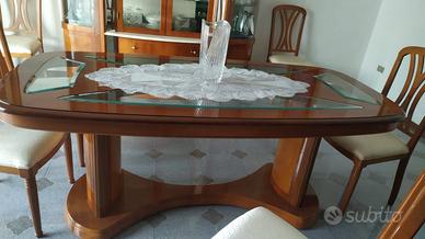 Salotto Completo in stile Classico Moderno composto da Armadio Cristalliera, Tavolo con cristallo e 6 Sedie, tutto in legno Rovere Stato Perfetto, Set visionabili a Guagnano