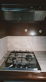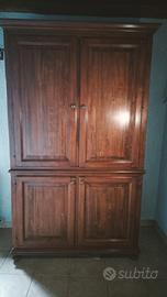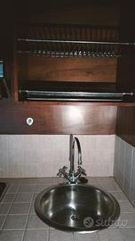 Armadio a due ante in legno con minicucina attrezzata all'interno , composta da:lavello, scolapiatti,piano cottura a 4fuochi con cappa aspiratore, frigorifero da sottopiano. spazio per pentole e posate