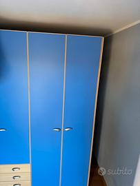 Armadio blu composto da una cassettiera al centro in basso con 4 ante molto spazziose per mettere tutti i vestiti che vuoi Marca moretti compact