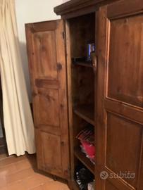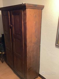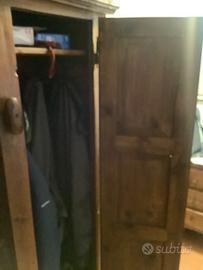 Armadio in larice, valdostano, 2 ante, artigianale, molto pesante, dell’ 800, tutto originale, a sx i ripiani e a dx n 6 attaccapanni, molto particolare H 196 cm, L 120 cm, P 50 cm