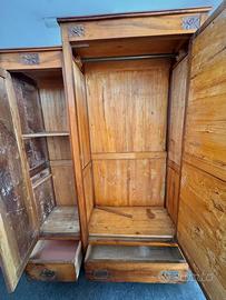 Armadio d’epoca con specchio centrale e cassetti inferiori.