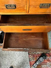 L’armadio è stato usato e conserva i segni del tempo che lo rendono ancora più affascinante. C’è da rifissare un’anta dello scomparto superiore con la sostituzione di una cerniera, ma per il resto la struttura è solida e stabile.