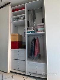Armadio da camera grande con 4 ante scorrevoli centrali e le 2 laterali che si aprono a cerniera. Lunghezza 4,20m X 2,90m di altezza X 65cm di profondità. Robusto tenuto benissimo tutto bianco, un armadio fatto bene su misura da artigiani miei amici circa 20 anni fa. Non ha un graffio e le ante si aprono e si chiudono perfettamente.