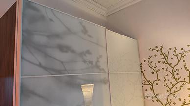 Vendo l'armadio Ikea da camera da letto Pax Tonnes. L'armadio è composto da due ante in cui si intravede un elegante motivo floreale.