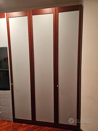 Vendo un armadio per camera da letto lungo 400 cm, alto 263 cm e profondo 60 cm della marca Molteni in legno massello e con ante laccate. L'armadio è composto da due moduli a 4 stagioni e due moduli con cassetti e ripiani. Il modulo centrale porta TV ha una cassettiera, un piano in cristallo e un modulo contenitore in alto.