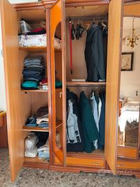 Imponente armadio da camera in legno (no truciolato) completo di quattro sportelli con specchi in ottimo stato, due ante laterali e cassetti per la biancheria. altezza cm. 250 larghezza cm. 290 profondità cm. 60