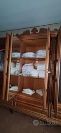 Grande armadio in legno di stile classico con ante a pannelli e decorazioni intagliate. Dimensioni: Lunghezza 320 cm, Altezza 240 cm Profondità 60 cm, Larghezza ripiani interni 94 cm Ritiro in loco Prezzo trattabile