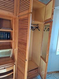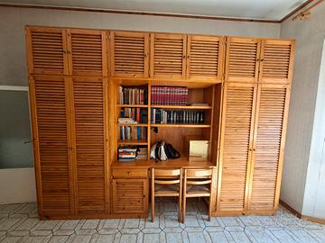 Armadio da cameretta artigianale dimensioni 350x60 h257 con 4 ante lunghe, 8 ante corte con scrivania e ripiani interno 4 cassettiere.