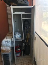 Armadio portascope da esterno Misure: larghezza 64 cm, profondità 45 cm e altezza 171 cm. Ritiro a mano zona Roma Eur/Mostacciano dal lunedì al venerdì dalle ore 9:00 alle ore 18:00