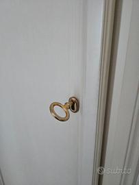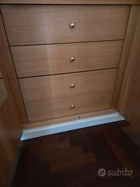 Armadio da incasso marca Mobilnovo, misure h 2,98 L 3,30, p 0,60. colore: esterno bianco avorio, interno noce tanganica chiaro ante n.7, cassetti n.4, aste appendiabiti n.5, ripiani numerosi.