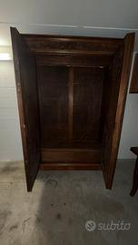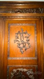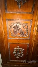 Vendo armadio da sacrestia periodo primi del 900 impiallacciato di noce con inserti fatti a mano e applicati Misure larghezza 146 cm , profondita 53 cm , altezza 2.26 cm. Prezzo richiesto 400 euro trattabile , ritiro a carico dell acquirente.