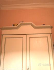 Armadio della nonna, gradevole e raffinato, rivisitato in stile shabby chic, color bianco con profili verde acqua.