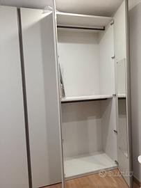 Armadio battente come nuovo, usato solo per appoggiare momentaneamente gli oggetti in foto. Acquistato con misure errate e per questo in vendita. Pagato 1300 euro. Colori: nuvola e basalto H258, P61 compreso di spessore anta, L203. 4 ante battenti