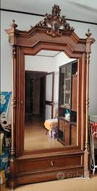 Armadio antico di grandi dimensioni intagliato a mano con anta compresa di specchio e grande cassetto sottostante. Ritiro a carico dell'acquirente