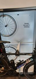 All'interno si può appendere comodamente 1 bici da strada con tutti gli accessori per gli allenamenti (casco, borracce, occhiali, giubbotto antivento, scarpe, materiale per la pulizia e manutenzione ed eventuali ruote da allenamento)