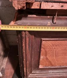 Armadio tirolese dipinto antico, epoca fine ‘800 primi del ‘900, molto sano, smontabile, altezza 220 cm, profondità 58 cm, larghezza 146 cm.
