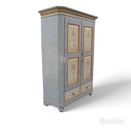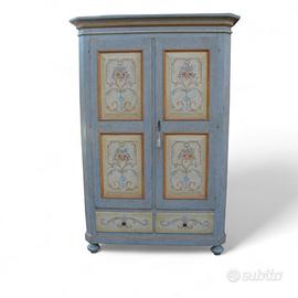 Questo armadio in stile antico dipinto a mano è un vero gioiello di artigianato. Le sue ante decorative laccate con motivi floreali delicati e ricchi ornamenti creano un'atmosfera di eleganza senza tempo. Le linee semplici e la struttura robusta in legno massiccio lo rendono un pezzo durevole e funzionale. La finitura in toni tenui di azzurro e crema aggiunge un tocco di raffinatezza. Perfetto per dare un tocco di charme vintage a qualsiasi stanza, questo armadio è un'aggiunta preziosa per la tua casa.