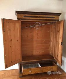Antico armadio dipinto epoca fine ‘800 primi del ‘900, molto sano, smontabile, altezza 220 cm, profondità 58 cm, larghezza 146 cm.