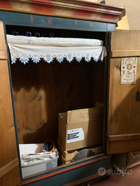 Vendo armadio dipinto originale datato 1844 del nordtirolo. In ottimo stato originale non è stato ritoccato o restaurato Le misure larghezza massima 130 cm profondità massima 56 cm altezza 172 cm Il mobile si trova a Bolzano
