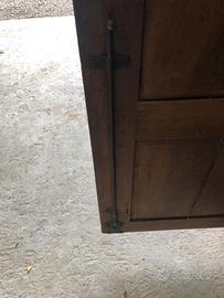 Antico armadio dispensa in legno massello di noce, con tre cassetti interni e ripiani.
