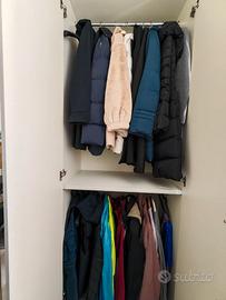 Misure: L 240 × P 52 × H 236 cm. Interni avorio con ripiani e tubi appendiabiti come da dotazione standard della serie.