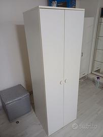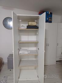 Armadio due ante bianco, H 180 L 90 P 45 Utilizzato con ripiani creati apposta. Si vende così come in foto. I ripiani si possono togliere e mettere l'asta come appendi abiti che NON c'è. Buono stato . Zona Corcolle roma