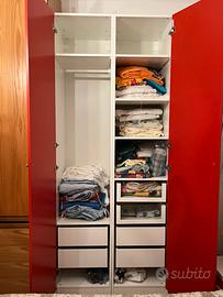 Vendesi armadio due ante 1x60x2,35 rosso con fianchi bianchi e due comodini abbinati 50x42x40