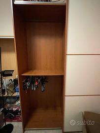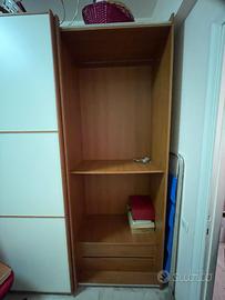 Dotato di due ripiani, aste per appendere gli abiti e cassettiera interna.