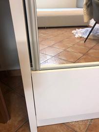 armadio due ante scorrevoli, una con specchio Colore bianco lucido. ci sono anche due cassetti molto capienti. misure 215x133x63. Armadio molto versatile può essere usato in camera da letto, cameretta oppure in disimpegno o ingresso. smontaggio e ritiro a carico dell'acquirente in zona Tor vergata uscita 20 del gra