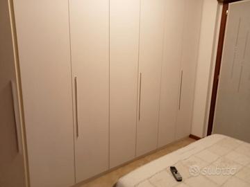 Armadio 6 ante a battente + anta angolare. Bianco con due cassettiere interne.