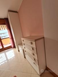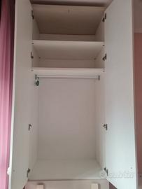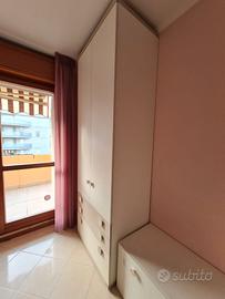 1) Armadio della Doimo CityLine con 2 ante laminate in bianco (alto cm. 263, lungo cm 896, profondo cm. 591), con 2 cassetti color tortora (alti cm 15,5) e 1 cassettone color magnolia (alto cm 32,2). Le parti superiore ed inferiore dell’armadio sono color tortora.