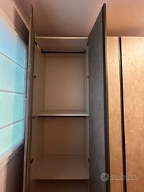 Armadio grigio originale Novamobili, con due scompartimenti indipendenti a doppia anta. Altezza 2,57mt, profondità 61cm, larghezza 1,80mt.