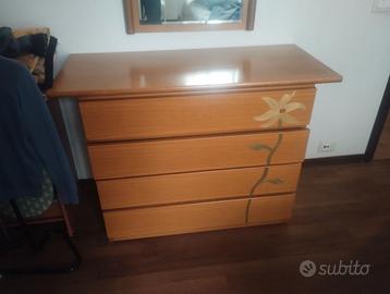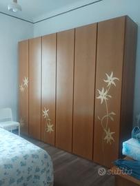 Armadio 6 ante battenti, misura 306 cm (larghezza) x 262 cm (altezza) x 58 cm (profondità). Armadio in buone condizioni, già smontato, come si vede dalle foto sono stati dipinti dei fiori, normale segni di usura ma buone condizioni. L'armadio è in tre vani e in altezza hanno un ripiano intermedio. Un vano presenta anche i cassetti nella parte inferiore. Insieme è presente un comò nello stesso stile anch'esso con dei fiori dipinti sopra, buone condizioni, usato. Ritiro a Sanremo
