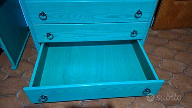 Vendesi armadio e cassettiera in legno massello, fatti a mano. Colore verde.