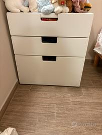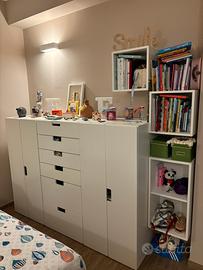 Vendesi mobili componibili Ikea come in foto. Composizione composta da: 2armadi singoli con appenderia e 2cassetti. Cassettiera centrale alta a 7cassetti. Cassettiera/comodino bassa a 3 cassetti. Bianca, ottime condizioni come nuova.