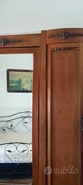 L'armadio e il comò sono stati costruiti dai mobilieri di Cantù e risalgono al primo ventennio del 1900. la copertura di questi mobili è caratterizzata da intarsi di legno a spina di pesce e le decorazioni sono in bronzo. È tutto originale.
