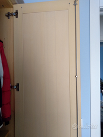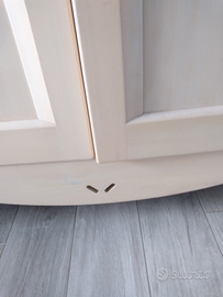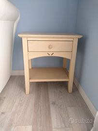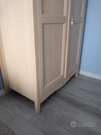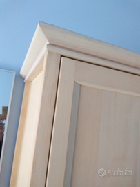 Armani e comodino minacciolo in legno massello colore vaniglia. Misure armadio 109 cm di larghezza, 210 cm di altezza e profomdità 62 cm . In più ha il toretto sopra che sporge 6 cm, per cui la larghezza diventa 121 cm e la profondità 72 cm.