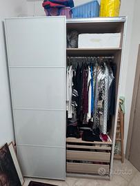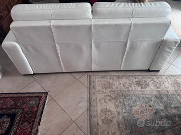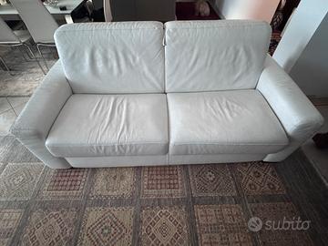 Vendesi divano letto in pelle, 200x110x90 bianco e armadio 240x250x60 per camera da letto con ante in vetro color bianco. Ritiro a cura dell'acquirente. Disponibile montacarichi per comodissimo trasporto al piano terra. I braccioli del divano presentano alcune graffiature; materasso in lattice compreso nel prezzo;Armadio in ottimo stato disponibile anche con luci interne vendute a parte.