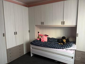 Vendo Armadio per cameretta insieme a letto singolo che dispone di una seconda rete estraibile che permette di formare un letto matrimoniale.