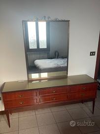 Vendo per trasloco armadio, cassettiera, specchio, due comodini, struttura letto con testiera, tutto coordinato. L’armadio ha sei ante, nella prima anta sono presenti cassetti, nell’anta centrale due specchi interni a figura intera.