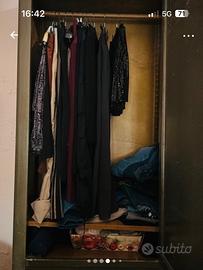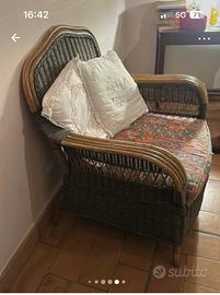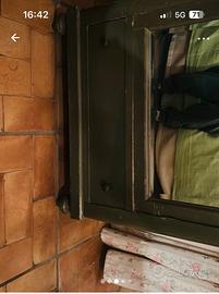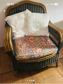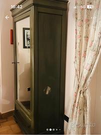 Vendo armadio verde 80/45/1.90 con cassettone alla base , appendiabiti, due mensole . Poltrona di vimini verde abbinata con cuscino