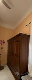 Armadio e scrivania per Stanzetta con armadio a 4 ante e 4 cassetti, comodino in noce, artigianato fiorentino, scrivania snodabile con cassettiera beige e giallo, come nuova