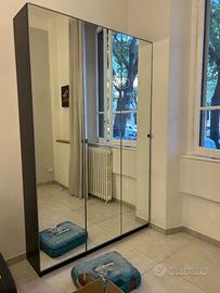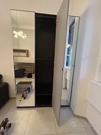 Vendo armadio IKEA PAX, colore marrone-nero, composto da 3 moduli da 50 cm ciascuno (totale 150 cm), con ante a specchio a tutta altezza. Design moderno ed essenziale, ideale per camere da letto, ingressi o cabine armadio. In condizioni pari al nuovo, usato pochissimo.