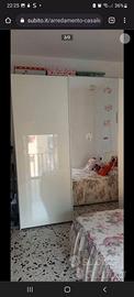 Armadio quattro stagioni bianco lucido (ora ingiallito) misure: 256 cm altezza,65 cm profondità e 274 cm di lunghezza....3 ante scorrevoli con anta centrale a specchio(sotto gli adesivi sono presenti macchie di ossidazione)e ce ne sono altre quattro..6 tubi appendiabiti...3 ripiani interni..nell'anta destra sono presenti 3 cassetti in tessuto con maniglie...nell'anta di sinistra 2 cassetti in tessuto senza maniglie..RITIRO E SMONTAGGIO A CARICO DELL'ACQUIRENTE PAGAMENTO IN CONTANTI ROMA E PROVINCIA
