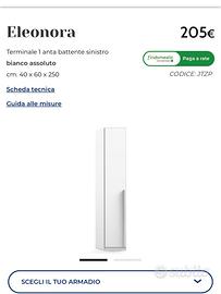 DISPONIBILE DA GIUGNO Vero affare! Vendo armadio modello Eleonora (Mondo Convenienza) composto da 6 ante lineari + modulo angolare terminale con 2 ante a specchio. ✅ Extra inclusi: 2 cassettiere interne comprese nel prezzo (valore extra all'acquisto). ✅ Misure: Altezza 260, molto capiente. ✅ Design: Moderno e lineare, si adatta a ogni camera. Smontaggio e trasporto a carico dell’acquirente