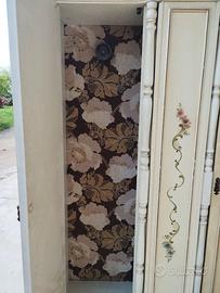 Armadio entratina, stile shabby, anni 70, in buono stato come da foto, ingombro esterno : altezza m 1,76 , larghezza esterna m 1,32; ingombro interno : altezza m 1,58, larghezza m 1,17, profondità cm 28. Per ulteriori informazioni e foto contattare, ritiro solo presso il mio domicilio, prezzo poco trattabile