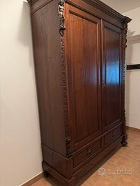 In legno di castagno apertura a due ante con cassetti assemblato a pannelli si puo’ smontare completamente restaurato ritiro in zona .
