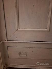Vendo armadio antico inizio 1900 apparteneva ai nonni di mio suocero. L'abbiamo solo ridipinto di bianco. Dentri anta sinistra si è staccato il gancio che la tiene chiusa,va solo riavvitato. Buone condizioni