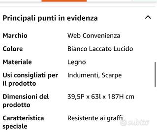 Guardaroba Bianco Laccato Lucido per Abiti e Cappotti - Made in Italy con Ante in Legno - Frontali motivo ondeggiante. Comprato l’anno scorso vendo per cambio arredo in ottime condizioni . Ottimo come guardaroba per ingresso