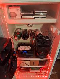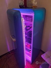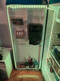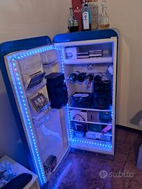 Frigo SMEG originale vintage, senza motore, ricondizionato a jukebox con led e portabottiglie. Vendo senza impianto stereo! Per intenditori di Design intramontabile! Misure 1,47h mt x 60cm larg x 0,64 prof. Per chi vuole un tocco di originalità nel suo ambiente domestico o di lavoro! Ideale per angolo Bar, musica, relax con un'icona del Design mondiale senza tempo, pezzo unico! Con impianto stereo Panasonic + 200 euro.
